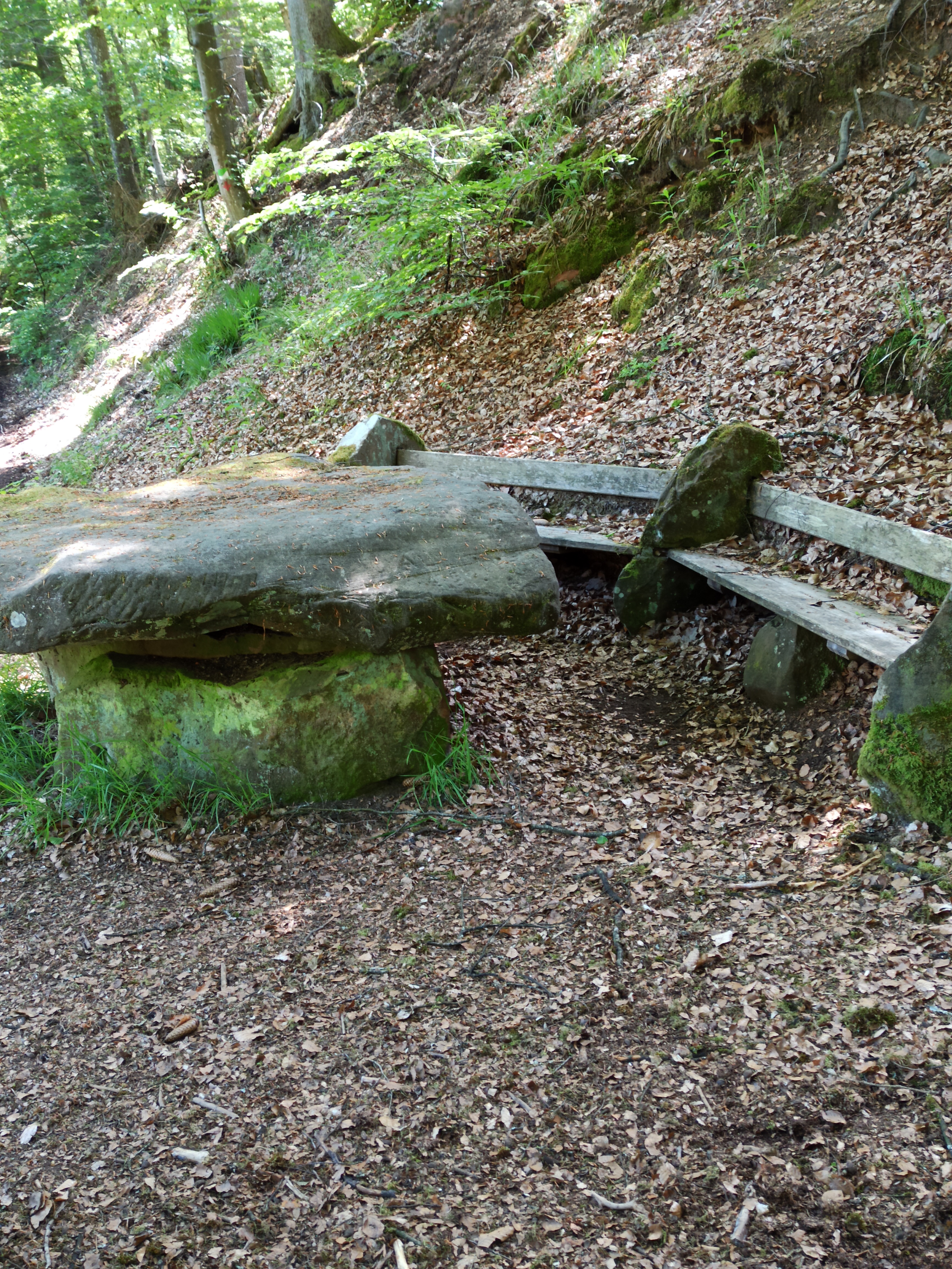 Irgendwann kriegt man dann auf seiner pervertierten Tour durch heimatliche Gefilde Hunger und macht Pause an so einem schönen Steintisch, der direkt aus Fred Feuersteins Wohnzimmer zu stammen scheint.