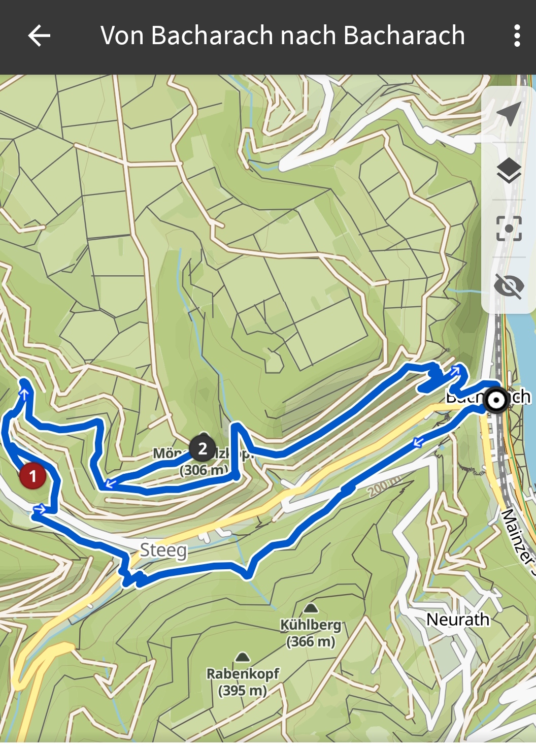 Diesmal eine Tour ins Weltkulturerbe Oberes Mittelrheintal. Von Bacharach aus in das kleine Seitental mit dem Dörfchen Steeg, zur Ruine Stahlberg und durch Wald und Weinberge zurück zum Startpunkt. Wer mag, kommt mit …