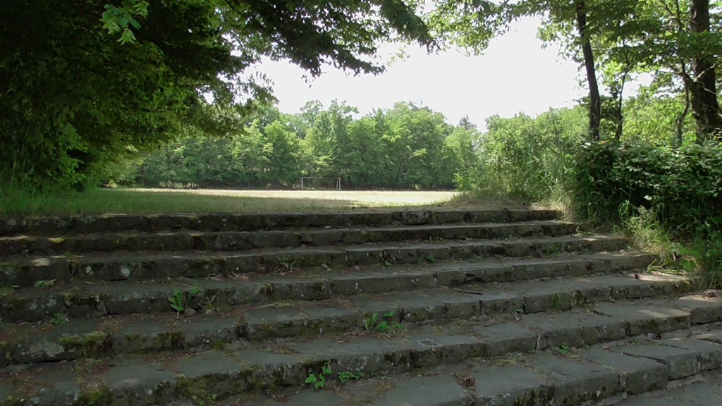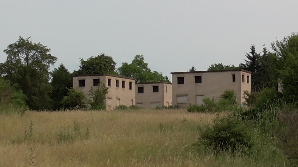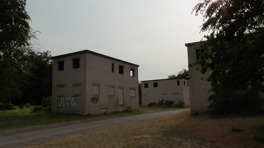 Von einem Parkplatz zwei Kilometer vor der Anlage ging es ein Stück entlang der Straße, dann einen schmalen Pfad, den sogenannten „Rot-Kreuz-Friedenspfad“, durch den Wald und schließlich auf das weitläufige Gelände der ehemaligen geplanten Elitenschmiede der allseits bekannten Geisteskranken.