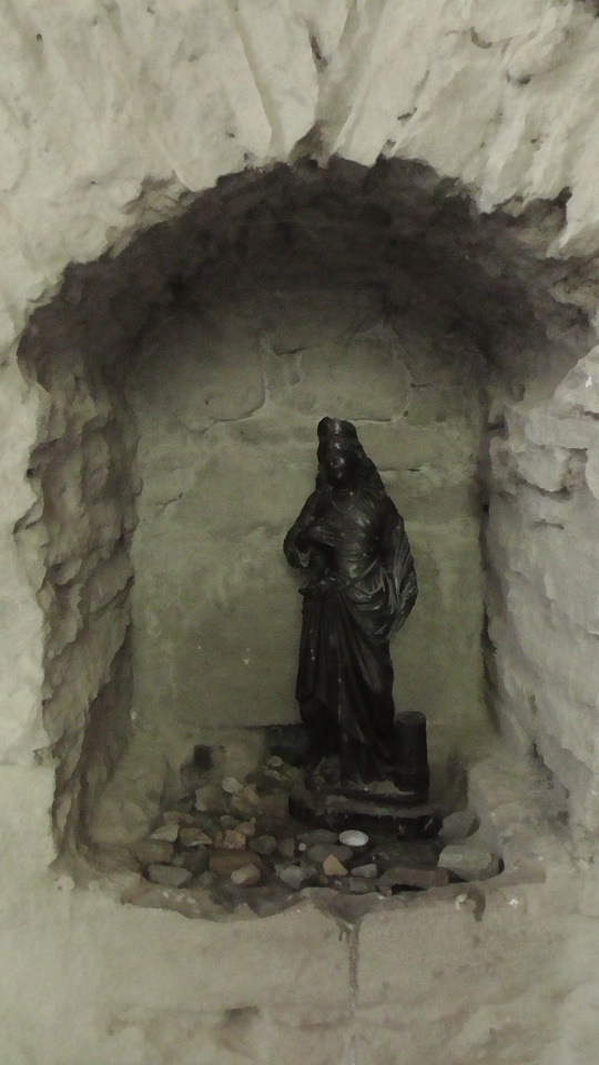Weiter geht’s nach einer ausgiebigen Pause wieder bergauf durch Kiefern- und Mischwald auf eine sonnige Anhöhe bis zur „Wüstung Wollseifen“, den traurigen Überresten des gleichnamigen Dorfes, das zwangsgeräumt wurde, um einen Truppenübungsplatz zu erreichten. Übrig geblieben sind eine kleine Kapelle, eine Kirche, das Schulgebäude, ein Trafohäuschen und ein paar kleine Ruinen. Wüstungen sind immer deprimierend. Menschen wurden aus ihren Häusern verjagt oder zwangsumgesiedelt und das ganze Dorf einfach zerstört. Irgendwie beklemmend, der Gedanke daran.