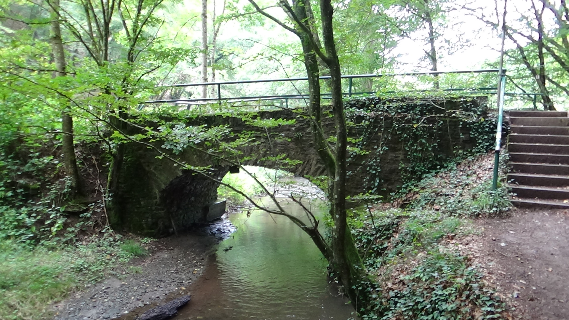 Die Klamm endet schließlich in einem ruhigen Waldstück, wo der Bach nur noch leise vor sich hin gluckert und man an einer schönen alten Steinbrücke wieder die Straße betritt.