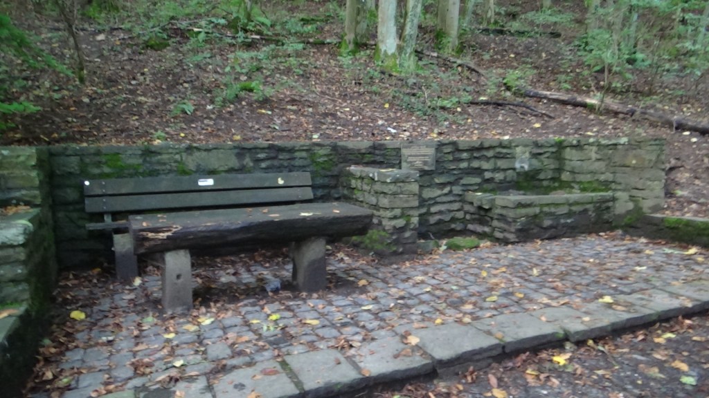 Erst geht’s ein Stück entlang der Straße, aber ganz schnell zweigt der Weg in den Wald ab, wo man schon nach wenigen hundert Metern an einer – scheinbar versiegten – Quelle vorbei kommt.