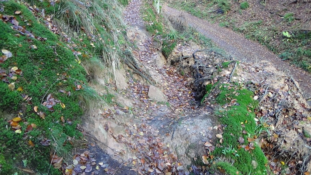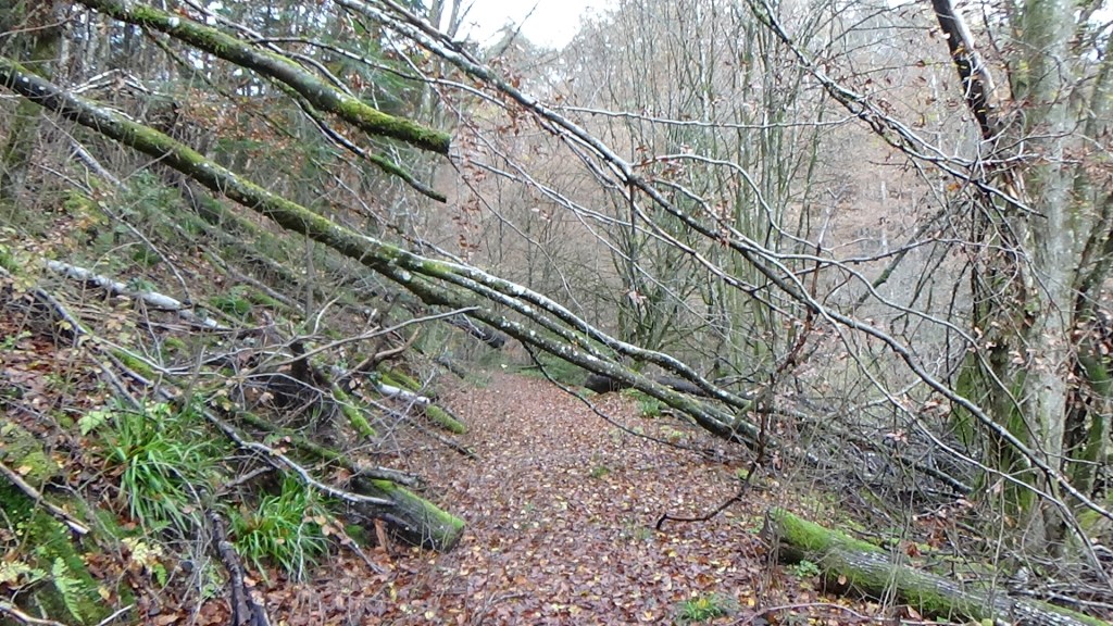 Schon der erste Abschnitt verspricht eine spannende Runde. Ein schmaler Pfad führt durch ein dicht bewaldetes Tal, umgestürzte Bäume liegen immer wieder quer über dem Weg und es ist stellenweise nicht zu übersehen, dass dieser Weg nicht wirklich oft begangen wird.