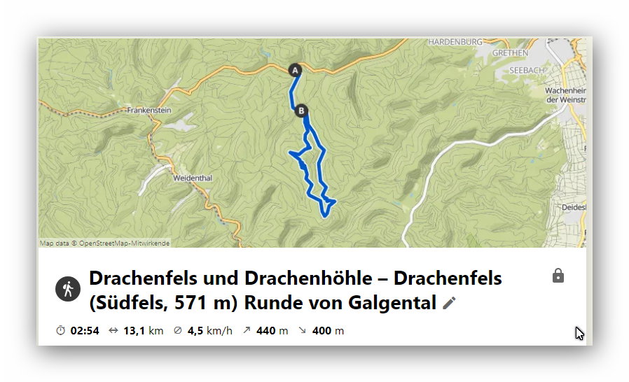 Der Drachenfels erhebt sich im Mittleren Pfälzerwald in der Gemarkung der Kreisstadt Bad Dürkheim. Mit einer Höhe von 570,8 m ü. NHN ist er fast so hoch wie der Donnersberg und damit einer der höchsten Berge im Pfälzer Bergland. Zugegeben, für die erste Tour im neuen Jahr hätten es auch weniger Höhenmeter sein können, denn bis zum Gipfel hatte ich alle drei T-Shirts schon durchgeschwitzt. Nichtsdestotrotz musste ich das schöne Wetter einfach nutzen, außerdem brauchte der Bulli wieder Bewegung, also Komoot aktivieren und nix wie weg.