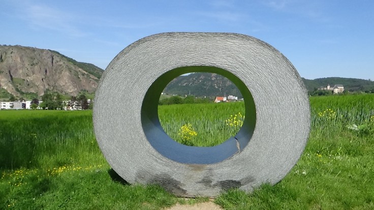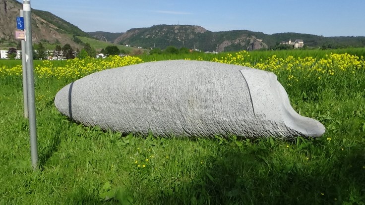 Wieder aus dem Wald heraus – und fortan ohne Mücken! – geht es auf die letzten Kilometer Richtung Ziel. Vorher kommt man aber noch an einem „Steinskulpturenpark“ mit imposanten Kunstwerken aus verschiedenen Steinarten vorbei.