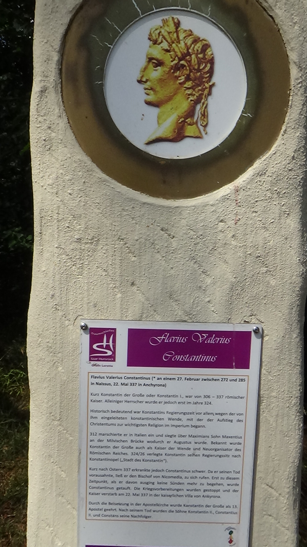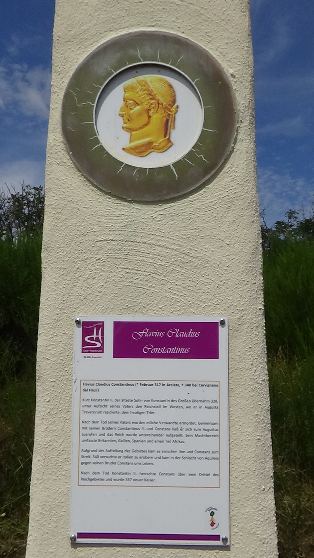 Oben angekommen, erwartet den Wanderer eine Überraschung. Neben einer großen Schutzhütte, einem Grillplatz und der schönen Fernsicht gibt es hier oben die „Kaiserallee“ Sie erinnert an die spätrömische Geschichte und präsentiert auf 12 großen, kunstvoll gestalteten Stelen die wichtigsten römischen Kaiser, die zur Zeit der Besiedelung des Nahekopfes regiert haben. Bereits in den Jahren 1995/96 fanden erste Ausgrabungen auf dem Nahekopf statt. Zwischen den einzelnen Kaiserstelen befinden sich außerdem die originalen Sandsteine, die auf dem Nahekopf gefunden wurden.