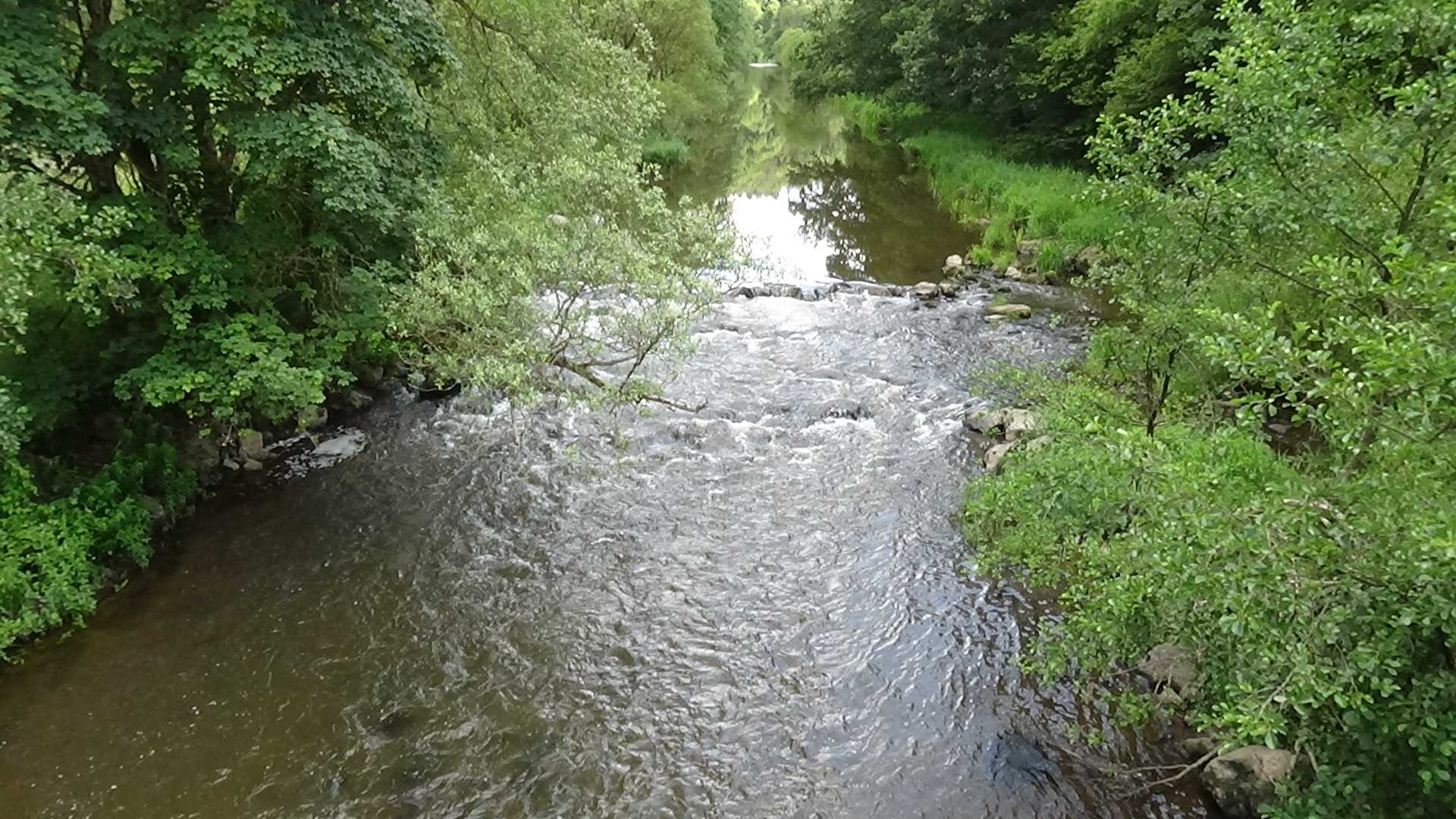 Im Verlauf des Weges erreicht man das hoch über der Nahe gelegene Hammerstein (im Video hab ich irrtümlich „Frauenberg“ geschrieben) und über das dortige Freizeitgelände des Verschönerungsvereins einen schmalen und kurvigen Trail runter zum Fluss. Der kurze Weg hat es in sich. Geröll, Steine und Wurzeln erfordern Trittsicherheit! Nach der Unterquerung einer Straßenbrücke wandert man kurz an der ruhig fließenden Nahe entlang, passiert diese dann auf einer Fahrradbrücke und geht dann quasi in entgegengesetzter Richtung ein paar hundert Meter „zurück“. Direkt unter einer Eisenbahnbrücke gibt es dann zur Abwechslung mal eine Gelegenheit, die Füße ins kalte Wasser zu halten!