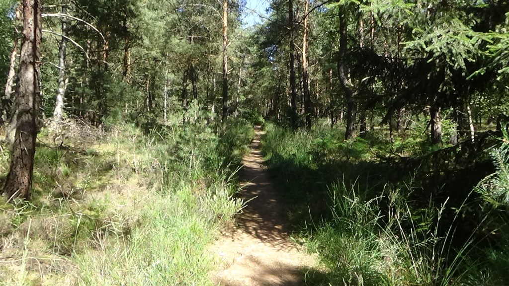 Entlang des ganzen Wegs duftet es abwechselnd nach Kiefernharz und anderen Gräsern und was nicht noch alles. Der Pfad ist weitgehend sandig und leicht zu gehen. An manchen Stellen schweift der Blick in die Ferne und die Heidelandschaft scheint kein Ende nehmen zu wollen.
