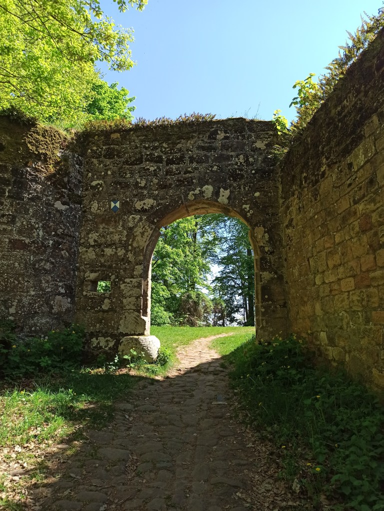 Nach einem erneuten, kurzen Rundgang durch die Anlage geht es dann auf dem anfangs erwähnten Burgweg wieder runter zum Parkplatz, wo der Bulli und ein heißer Kaffee warten.