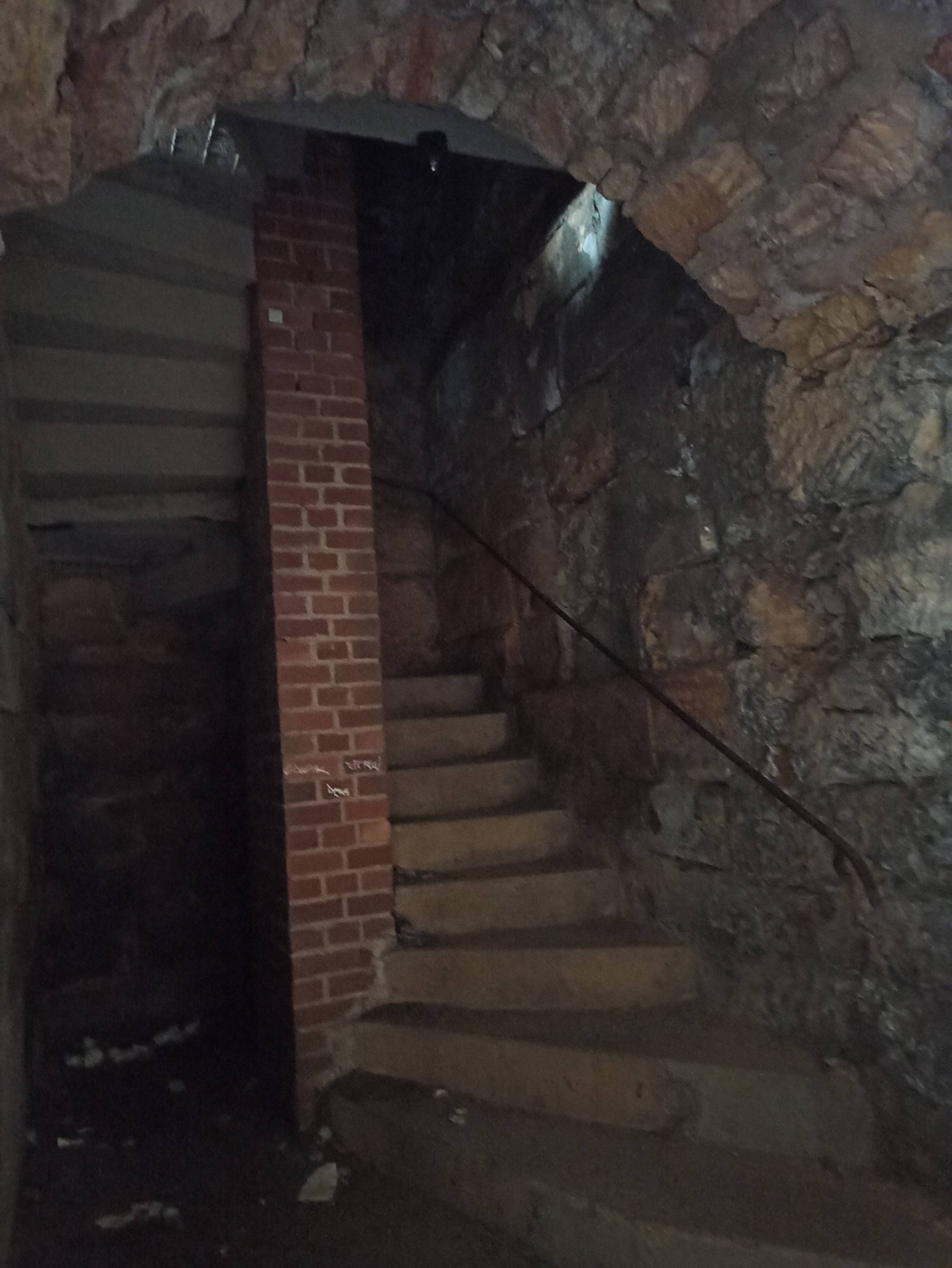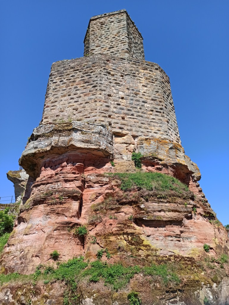 Zeit, sich die schöne Ruine genauer anzusehen. Allerdings erst, nachdem man wieder zu Atem gekommen ist; das letzte Stück bis nach oben ist nochmal eine kleine Herausforderung. Dann das durchgeschwitzte Hemd wechseln, Wasser übern Kopp und los geht’s: