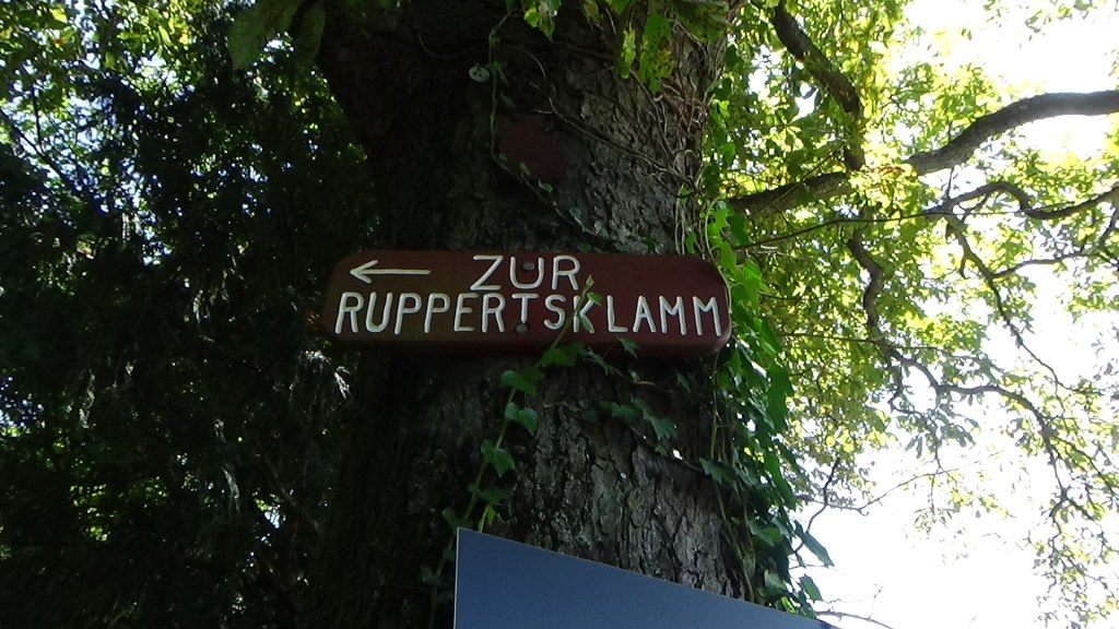 Der eigentliche „Eingang“ zur Klamm befindet sich am unteren Ende, aber ich würde empfehlen, oben, also am Ausgang neben der Wanderhütte, einzusteigen. Der Weg durch die Schlucht ins Tal ist wirklich nicht ohne! Ich hab schon die eine oder andere Klamm durchquert, aber hier gibt es Stellen, die sind echt heftig! Nicht umsonst sind sie durch Stahlseile und stellenweise sogar Tritteisen gesichert. Man sollte absolut trittsicher sein und mit guten Wanderschuhen unterwegs sein! Ein paar kurze Fakten zur Ruppertsklamm: