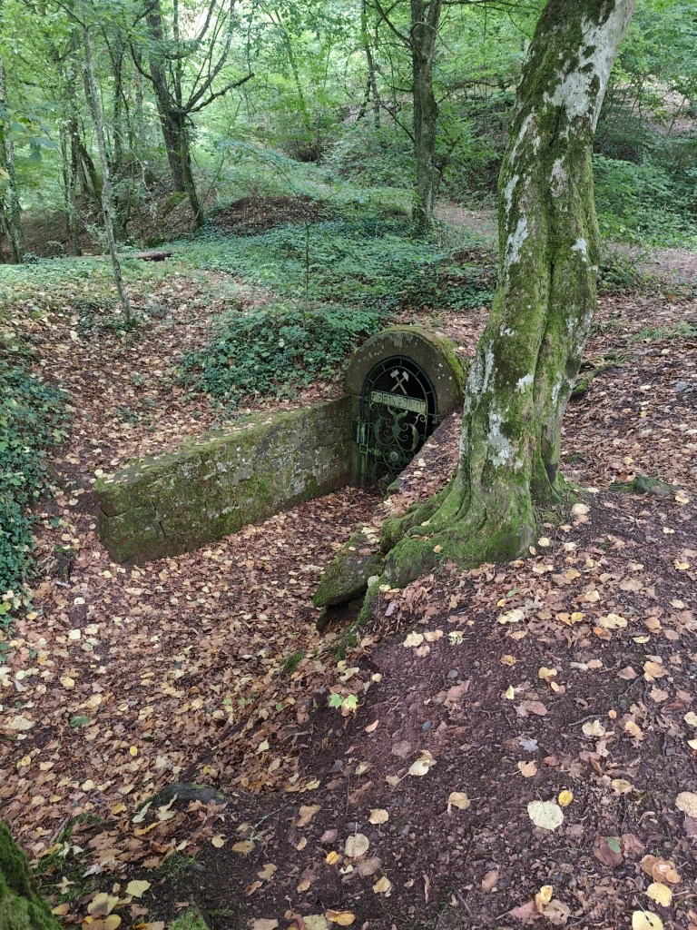 Schließlich führt der Weg unterhalb der beiden Gruben „Katharina I +II entlang. Auch diese sind eingezäunt und gesichert. Nicht weit befindet sich ein Nebenstollen. Die ganze Anlage bietet einen imposanten Eindruck vom damaligen Bergbau.