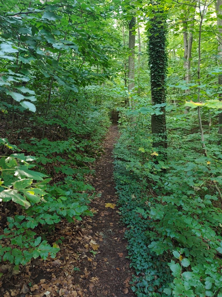Imsbach ist etwa eine halbe Stunde Fahrt von mir entfernt und kuschelt sich sozusagen an den Rand des Donnersbergs. Die Gegend rundherum ist geprägt von Bergbau, der allerdings schon lange nicht mehr betrieben wird. Eine ganze Menge Infos, auch zu den Besucherbergwerken, findet man hier. Von Imsbach aus führt eine schmale Straße in den Wald zu einem großen Parkplatz in der Nähe der „Weißen Grube“, die allerdings derzeit wegen Sanierung geschlossen ist. Unsere Wanderung beginnt auf herkömmlichen, gut ausgeschilderten Waldwegen und führt erstmal stetig bergauf.