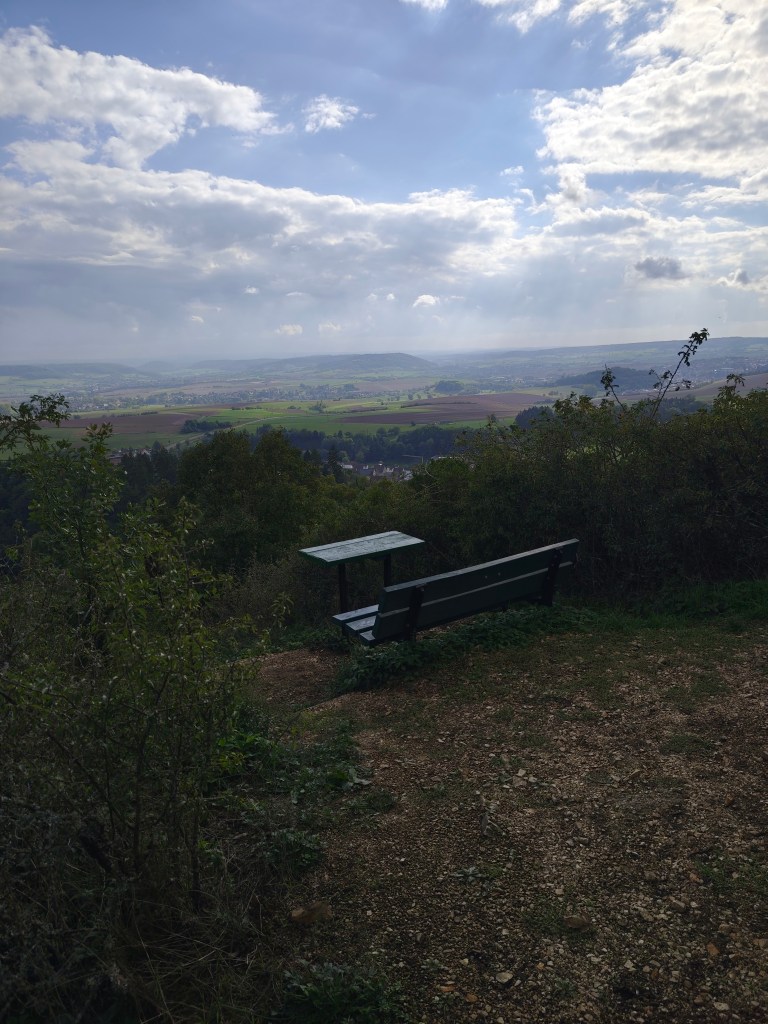 Im Verlauf erreicht man anschließend einen sehr schönen Rastplatz mit herrlicher Fernsicht über das Pfälzer Bergland oberhalb von Imsbach.