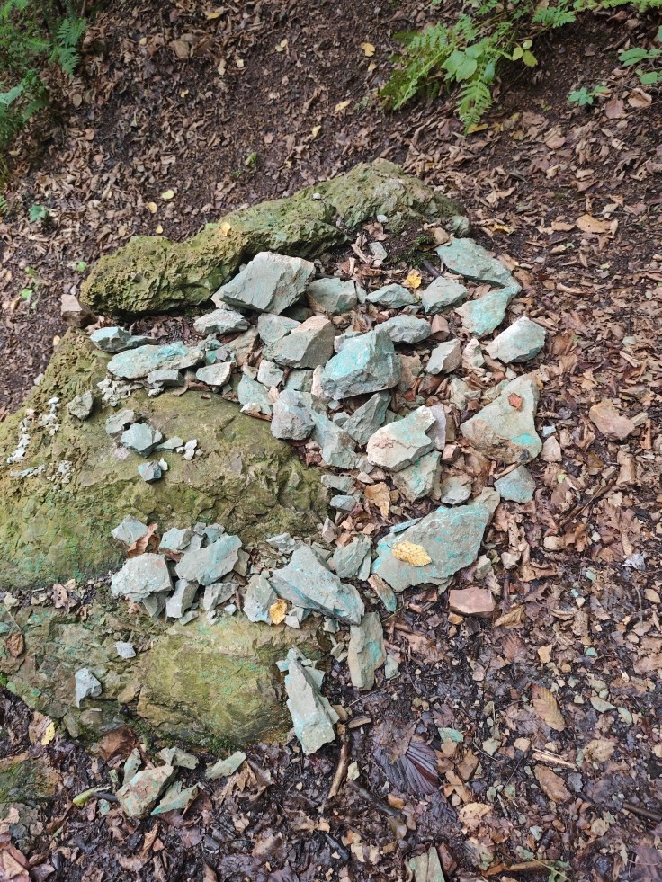 Zuvor kann man sich jedoch noch einen kleinen Stollen angucken, der einige Meter neben dem Wanderweg in den Fels gehauen wurde, aber schließlich mangels Ertrag an Kupfererz nicht weiter ausgebaut wurde. Der „Teufels-Stollen“: